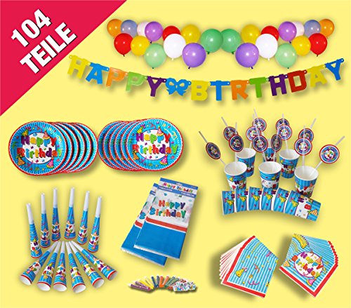 KAUFEN DKB Partytime XXL Partyset Happy Birthday Partygeschirr 104 tlg.. Teller, Becher, Servietten uvm...