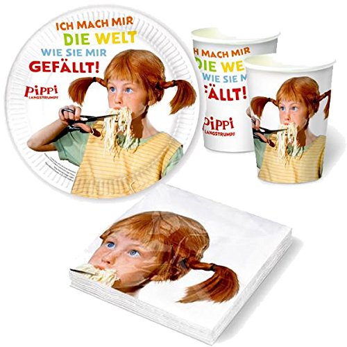 37-tlg. Party-Set * PIPPI LANGSTRUMPF - FILM* mit Pappteller + Servietten + Pappbecher + Deko für Kindergeburtstag von Lutz Mauder // Teller Becher Essen Pappe Geschirr Party Deko Dekoration Einweg Kinder Geburtstag Mottoparty Astrid Lindgren