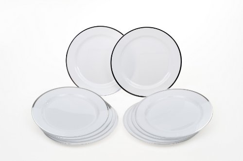 GRÄWE 10 Kunststoff-Teller, Durchmesser 26 cm10 stabile Teller aus robustem Kunststoff. Die Porzellan-Optik und der Silberrand setzen edle Akzente. Das perfekte Geschirr für Geburtstagsfeier, Grillabend, Gartenparty oder Straßenfest.Die Teller werden auch gastronomischen Ansprüchen gerecht und eignen sich hervorragend für Buffets und Caterings. Lieferumfang 10 Teller aus Polystyrol (Ø 26 cm)10 Einwegteller, Durchmesser ca. 26 cm